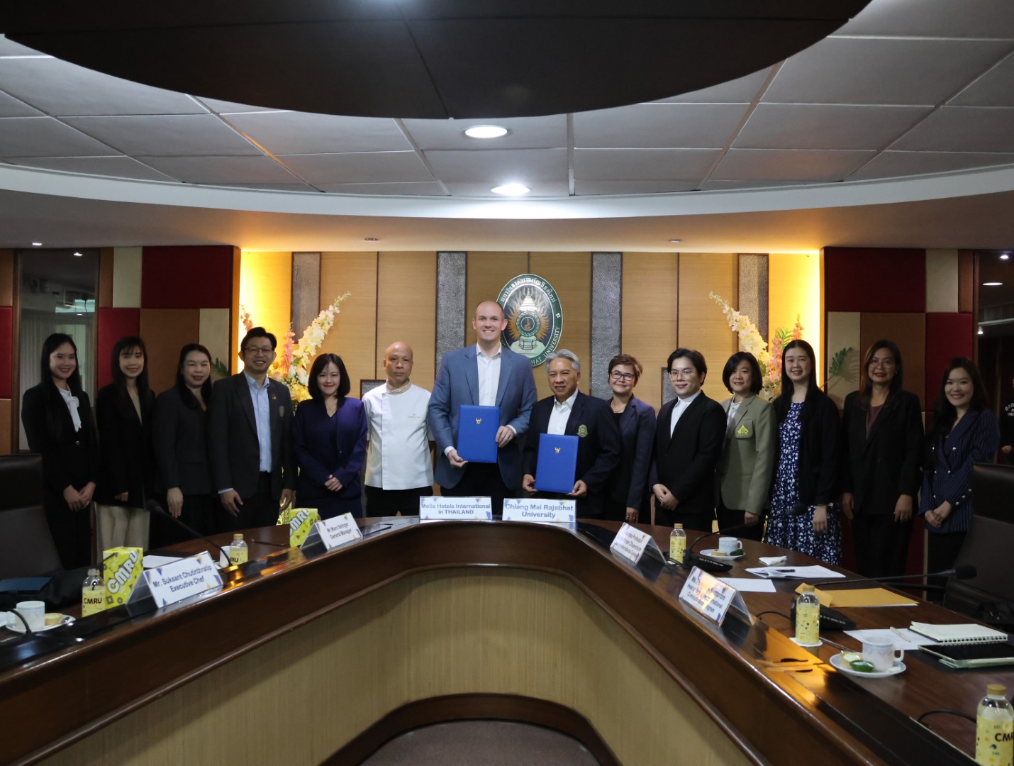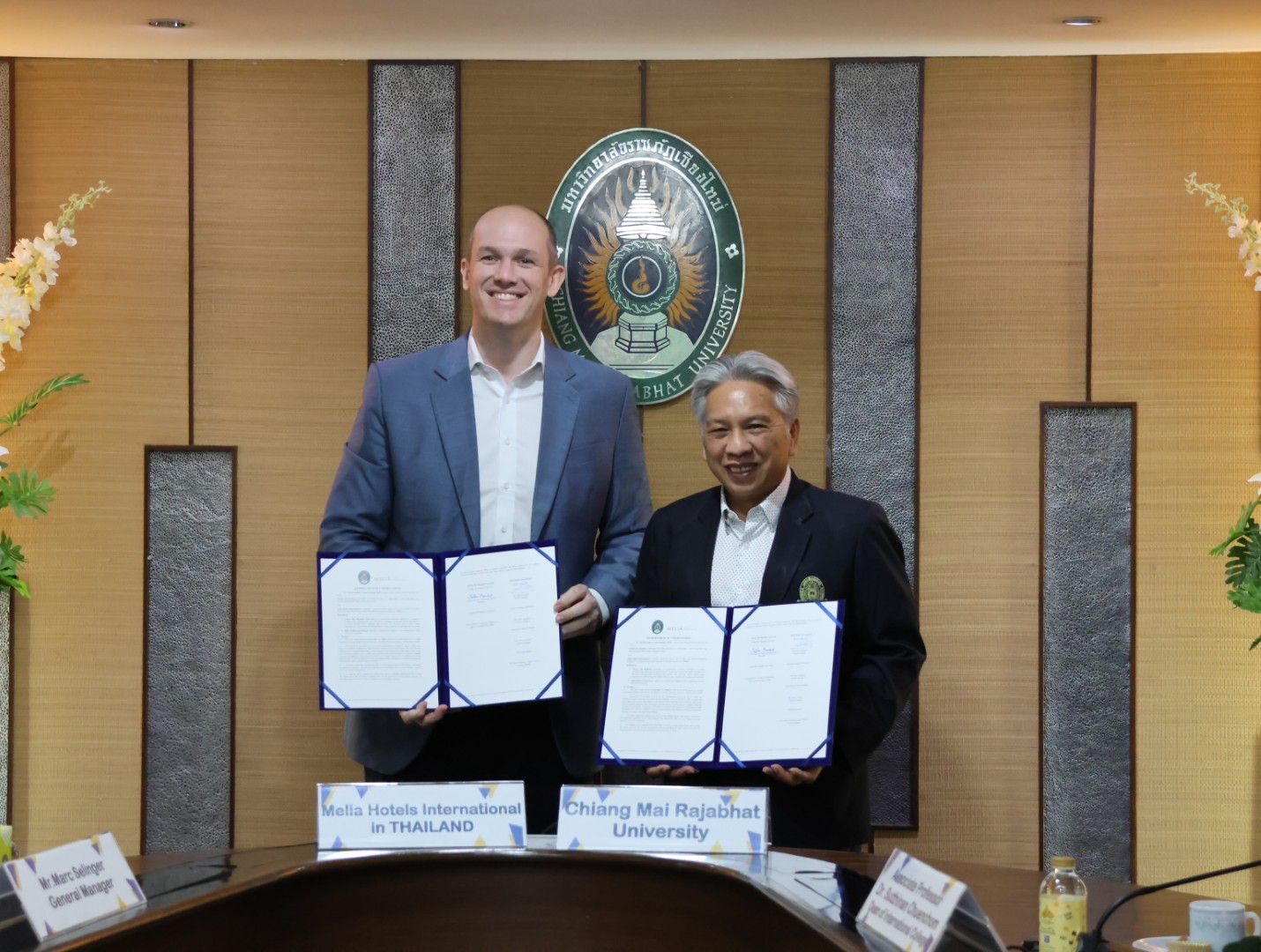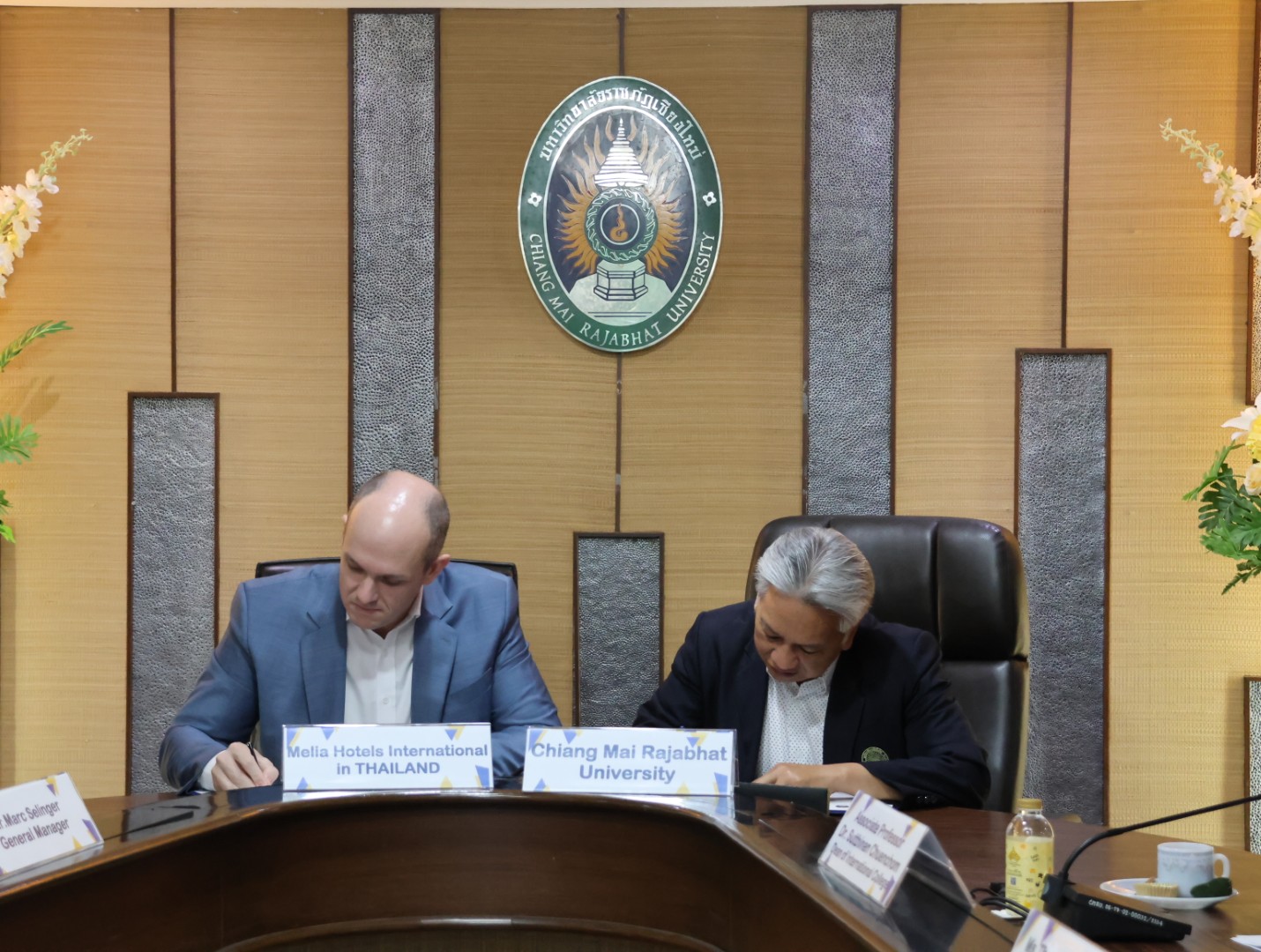 Chiang Mai Rajabhat University (CMRU) officially signed a Memorandum of Understanding (MOU) with Meliá Hotels International to establish a strategic partnership focusing on education, training, and human resource development. The ceremony took place at the University Council Meeting Room, 2nd Floor, Rajabhat Chalermprakiat Building, Chiang Mai Rajabhat University.