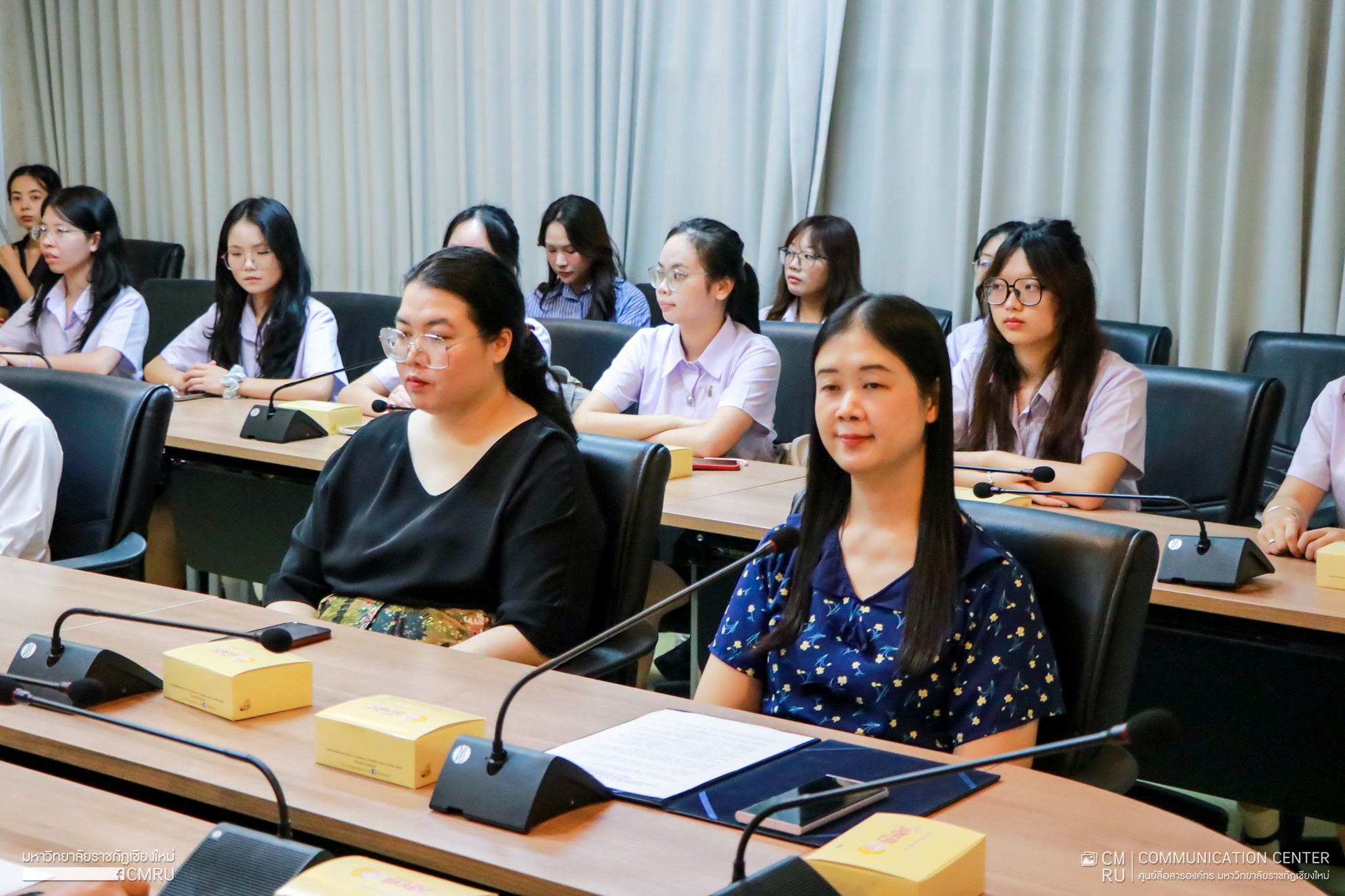 The ceremony was honored by Assoc. Prof. Dr. Chatree Maneekosol, President of CMRU, who delivered a warm welcome address.Assoc. Prof. Dr. Chatree Maneekosol, President of CMRU, presided over the ceremony and delivered a welcoming address. Also in attendance were Ajarn Kamonwan Sangsikaew, Deputy Dean of the International College, and Dr. Warasuda Wattanawong, Director of the Office of International Affairs.along with university executives and faculty members. All extended a warm welcome and offered valuable advice to help the students adapt and make the most of their exchange experience at CMRU.