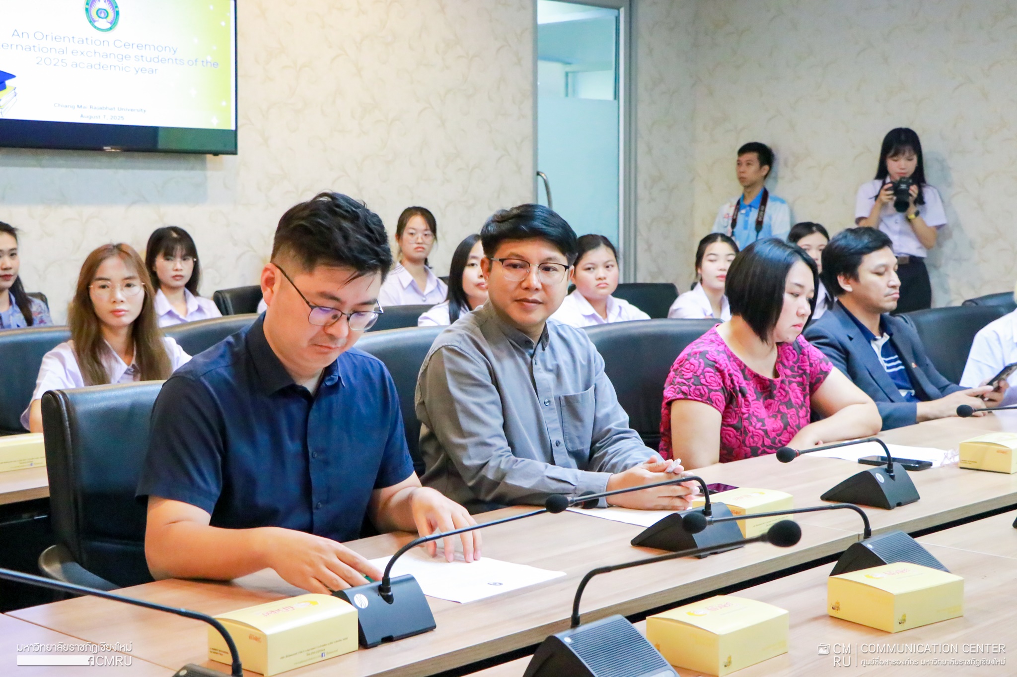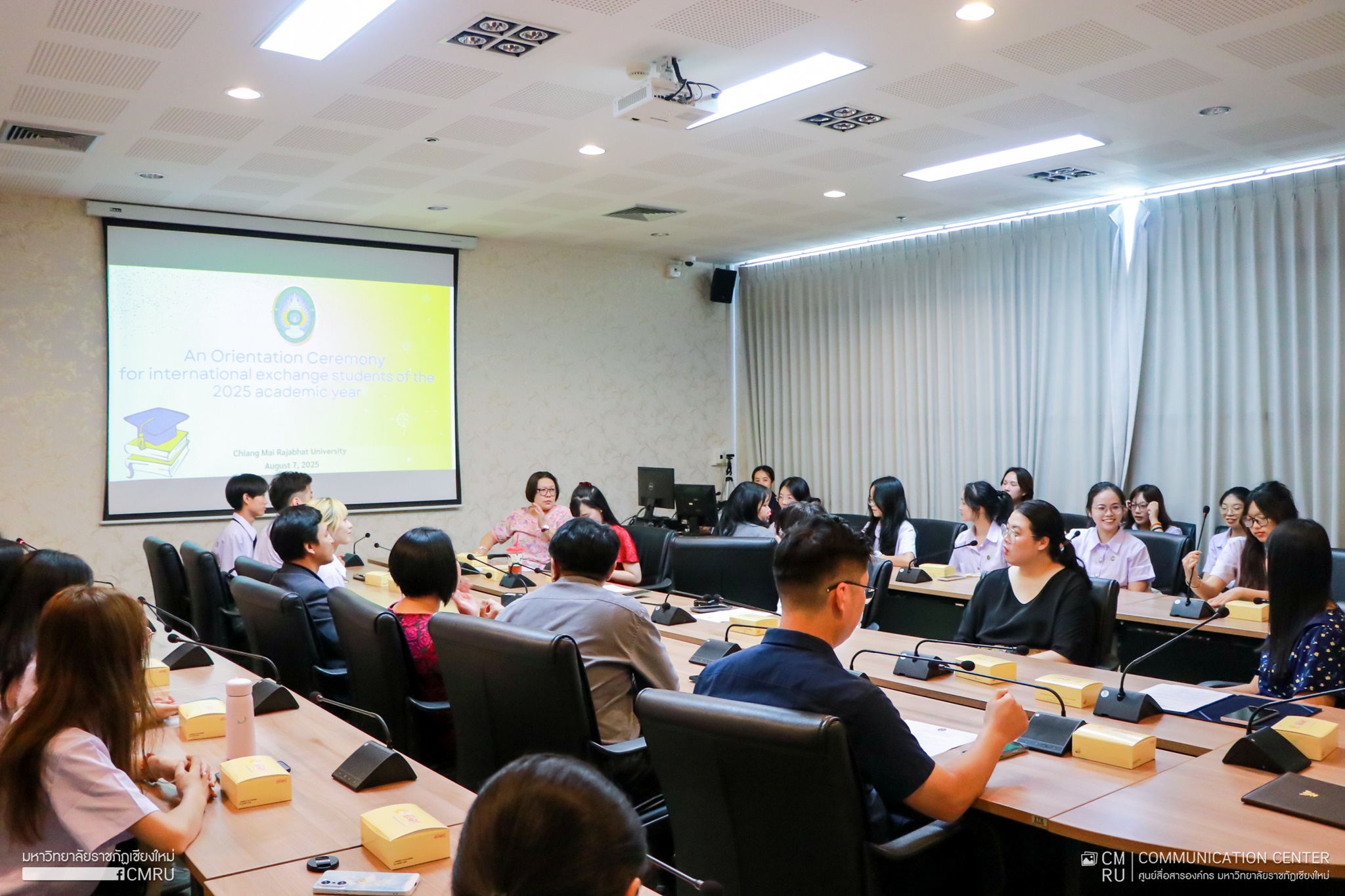 สำนักงานวิเทศสัมพันธ์ ร่วมกับวิทยาลัยนานาชาติ มหาวิทยาลัยราชภัฏเชียงใหม่ จัดพิธีปฐมนิเทศต้อนรับนักศึกษาแลกเปลี่ยนจาก Guangxi Normal University สาธารณรัฐประชาชนจีน และนักศึกษาแลกเปลี่ยนจาก Tenri University และ Kyoto University of Education ประเทศญี่ปุ่น เมื่อวันที่ 7 สิงหาคม 2568 ณ ห้องประชุม 2 วิทยาลัยนานาชาติ ชั้น 7 อาคาร 90 ปี ราชภัฏเชียงใหม่