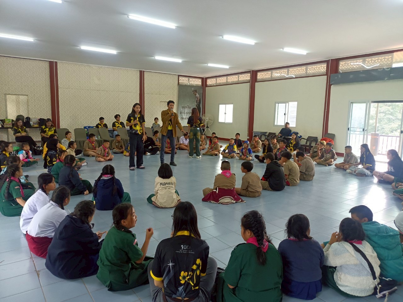 คณะอาจารย์และนักศึกษาสาขาวิชาภาษาอังกฤษเพื่อการสื่อสารระหว่างประเทศ ได้ลงพื้นที่จัดกิจกรรมบริการวิชาการหัวข้อ “การอบรมมัคคุเทศก์น้อย” ให้แก่นักเรียนชั้นประถมศึกษาปีที่ 4–6 โรงเรียนเจ้าพ่อหลวงอุปถัมภ์ ๑ หมู่บ้านดอยปุย ตำบลสุเทพ อำเภอเมืองเชียงใหม่ การบริการวิชาการในครั้งนี้ถือเป็นการบูรณาการความรู้จากรายวิชาของนักศึกษาเพื่อนำไปประยุกต์ใช้จริง พร้อมทั้งถ่ายทอดความรู้และทักษะการสื่อสารภาษาอังกฤษให้นักเรียนสามารถนำไปใช้ในการเป็นมัคคุเทศก์น้อย เพื่อส่งเสริมการท่องเที่ยวเชิงชุมชนในอนาคต