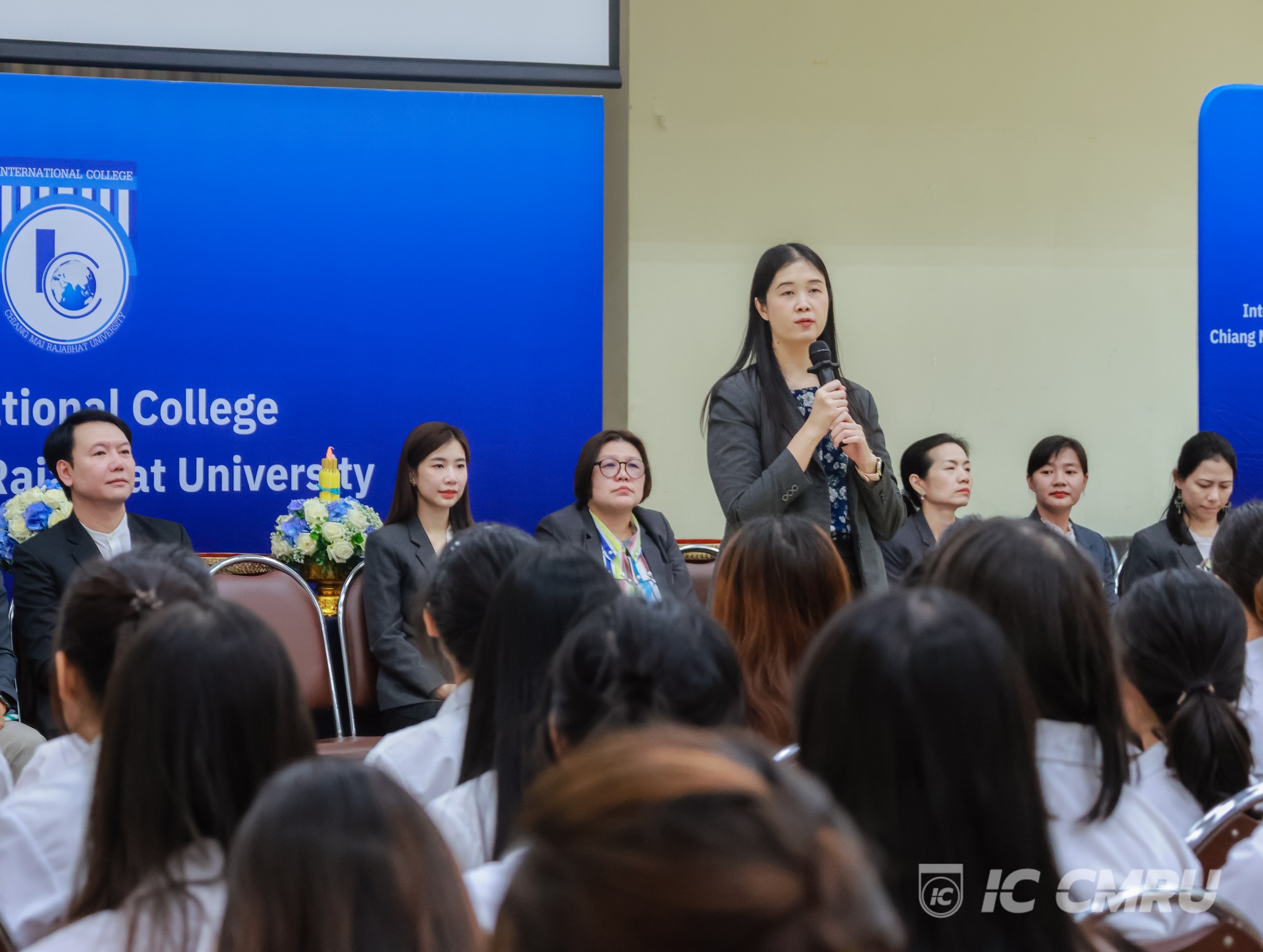 On August 14, 2025, the International College of Chiang Mai Rajabhat University (CMRU) organized its annual Teacher Appreciation Day and University Pin Badge Giving ceremony on the 15th floor of the 90th Anniversary Building. The event was held to honor and show gratitude to the faculty members for their guidance and dedication.