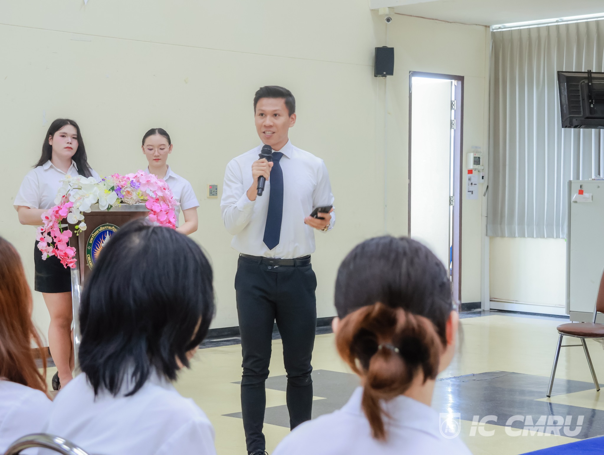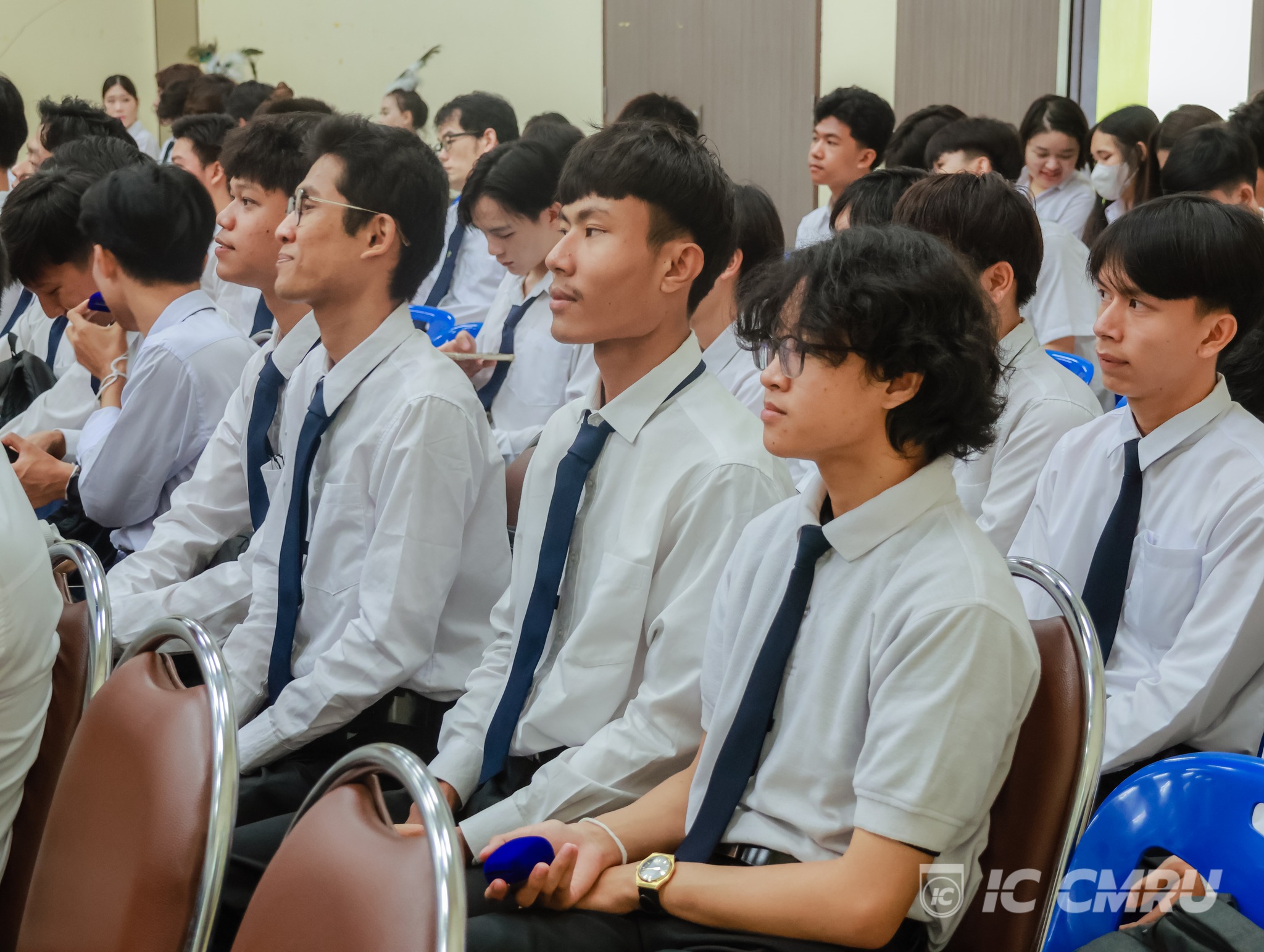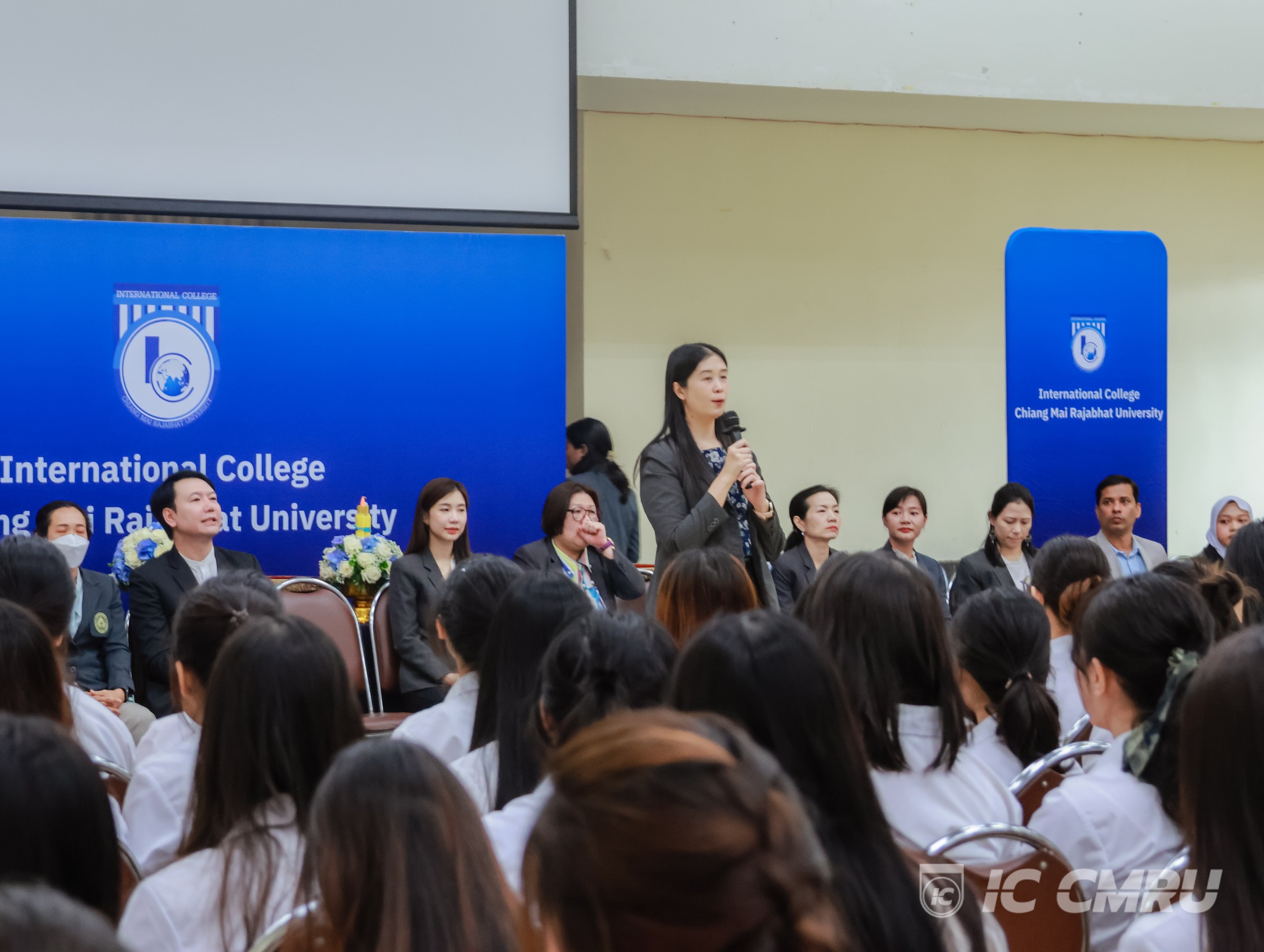 The ceremony also featured the presentation of university pin badges to new students, serving as a token of encouragement and a symbol of pride in becoming a part of the CMRU community. The event fostered a warm and memorable atmosphere for both faculty and students.