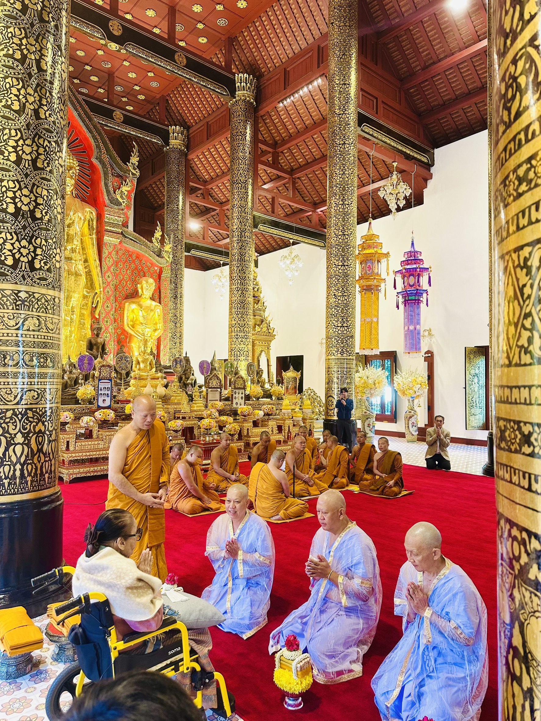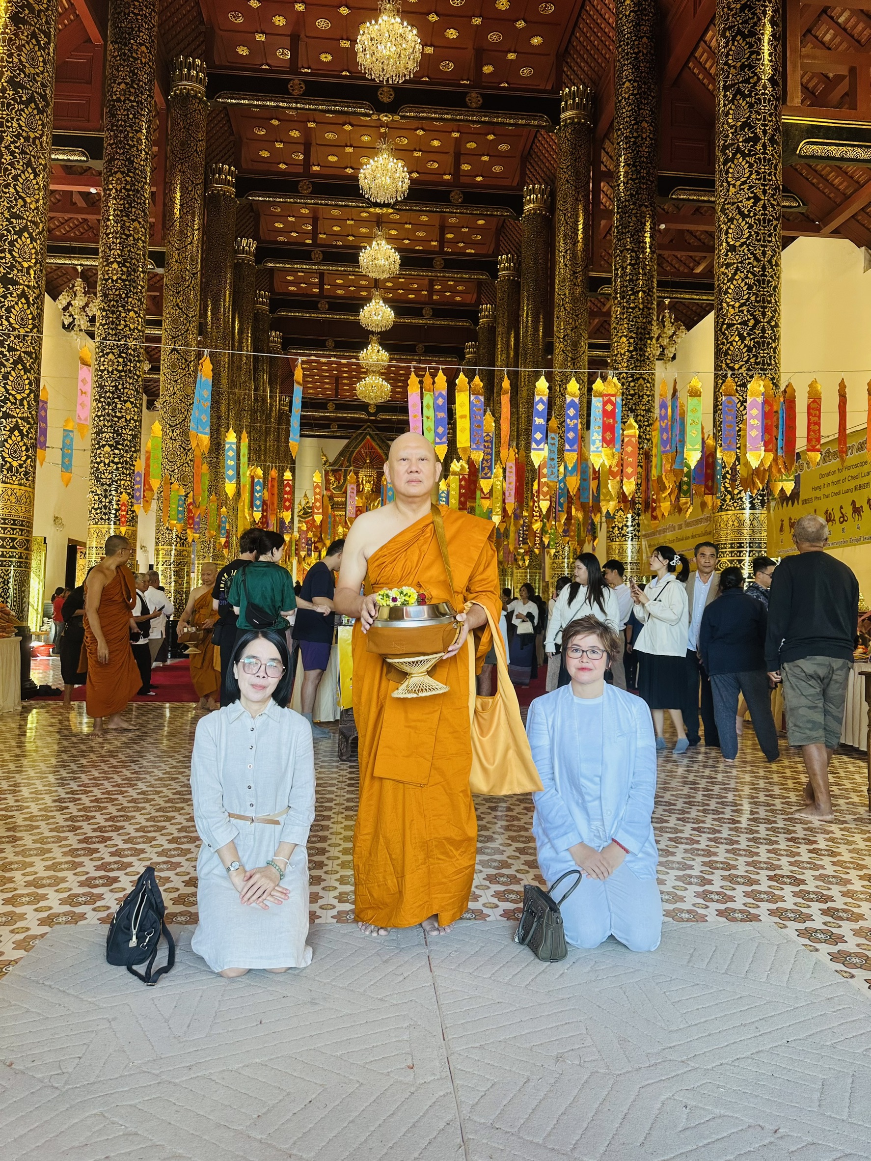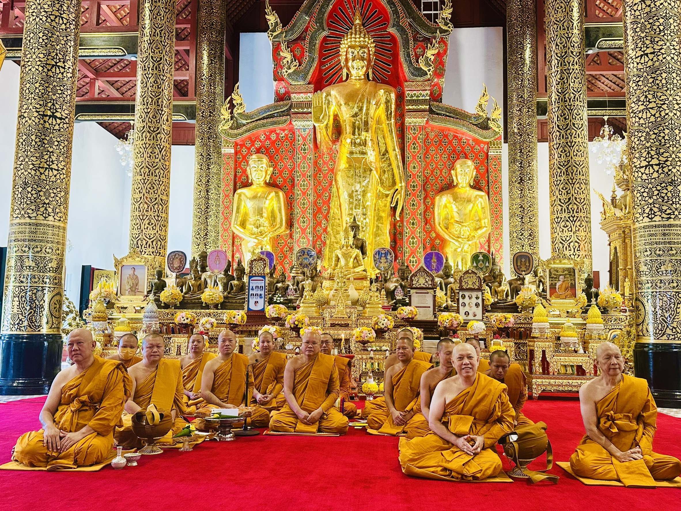 On Friday, January 9, 2026, at 9:00 AM, Assoc. Prof. Dr. Suthinan Chuenchom, Dean of the International College, Chiang Mai Rajabhat University, led the executive team to attend the ordination ceremony of Mr. Narong Kongprasert, Chairman of the Executive Committee of International College, Chiang Mai Rajabhat University. The ceremony took place at the historic Wat Chedi Luang Worawihan in Chiang Mai.