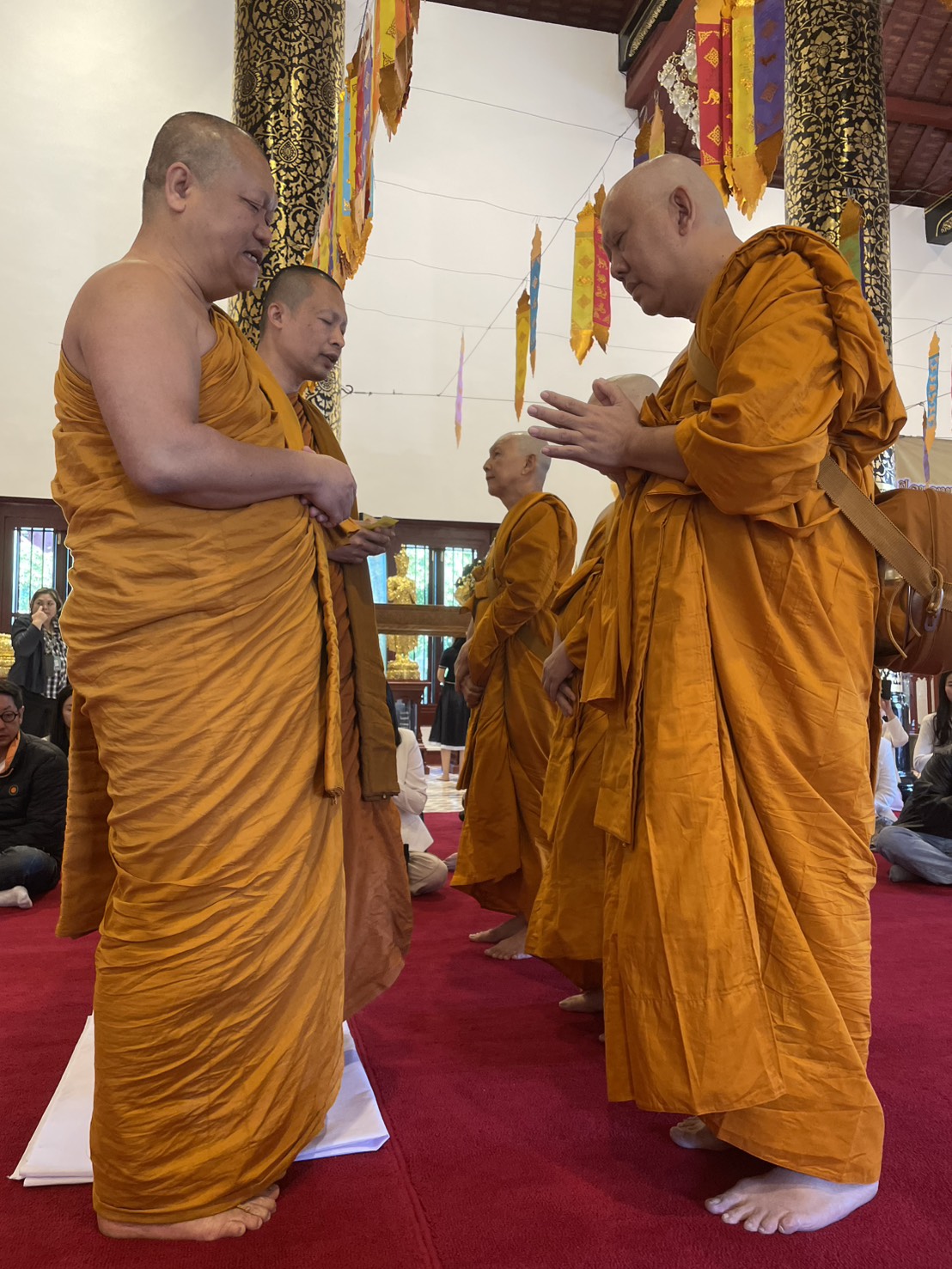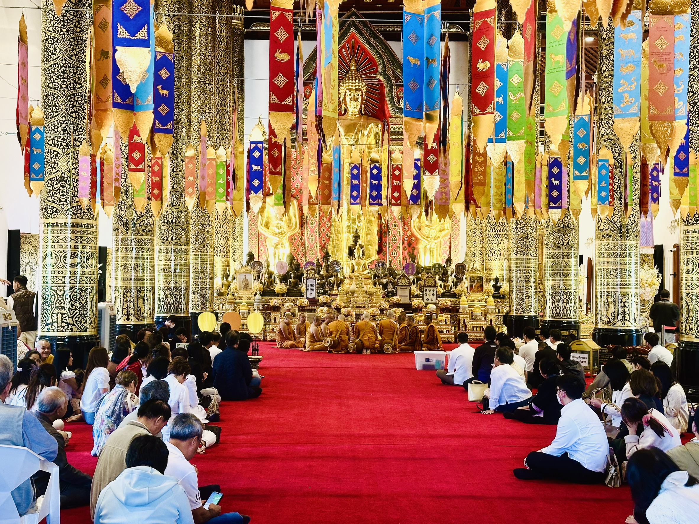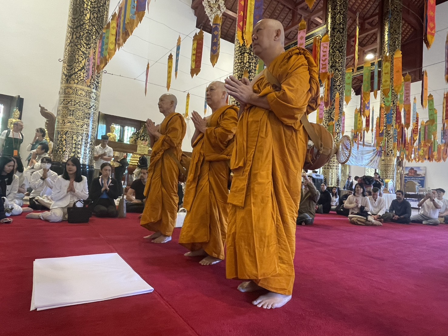 On Friday, January 9, 2026, at 9:00 AM, Assoc. Prof. Dr. Suthinan Chuenchom, Dean of the International College, Chiang Mai Rajabhat University, led the executive team to attend the ordination ceremony of Mr. Narong Kongprasert, Chairman of the Executive Committee of International College, Chiang Mai Rajabhat University. The ceremony took place at the historic Wat Chedi Luang Worawihan in Chiang Mai.