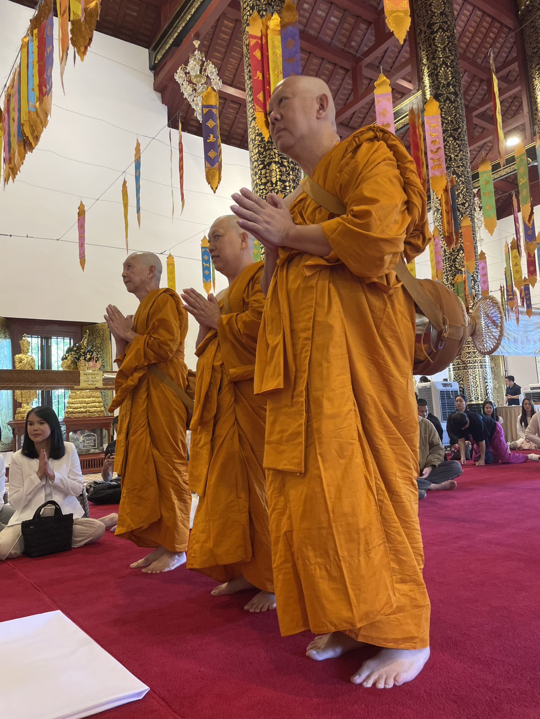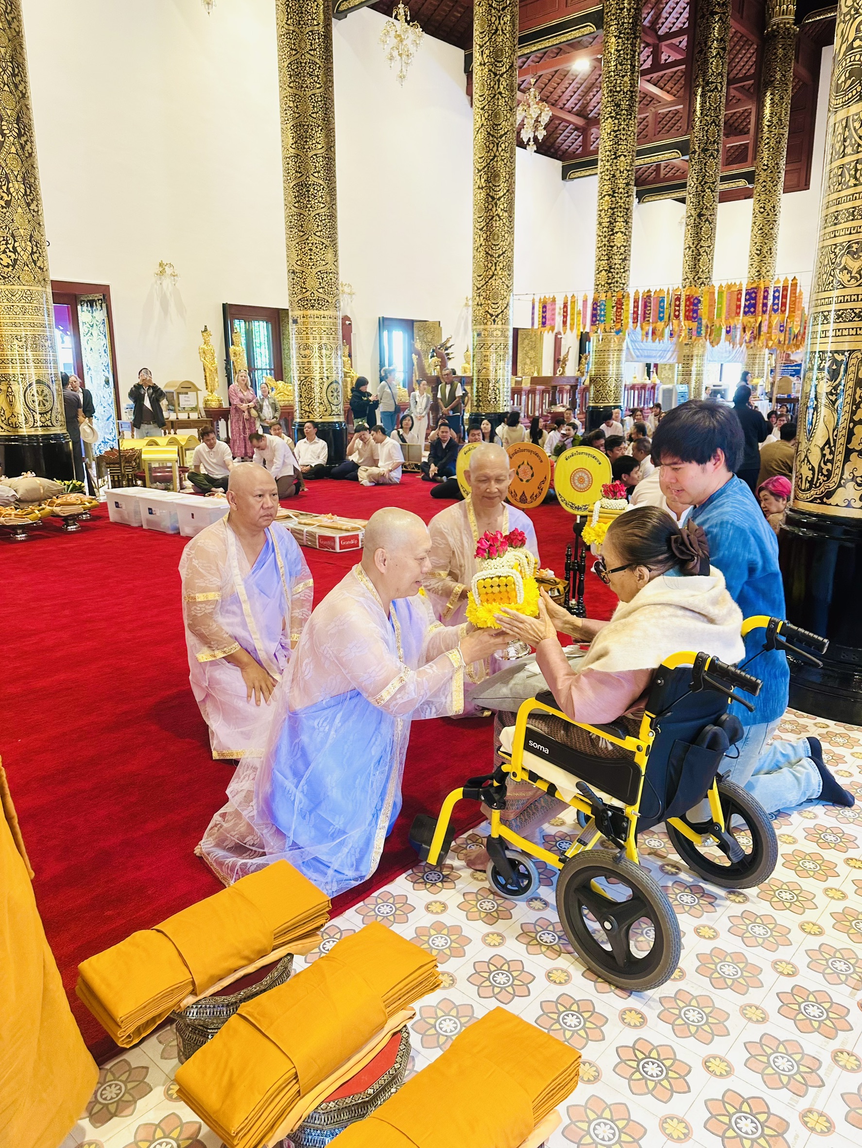 Mr. Narong entered the monkhood to express gratitude and dedicate merit to his mother on the auspicious occasion of her 96th birthday. Upon his ordination, he was given the Dharma name “Nakavaro.” The ceremony was attended by family, friends, and colleagues who gathered to join in this meritorious occasion and offer their well wishes.