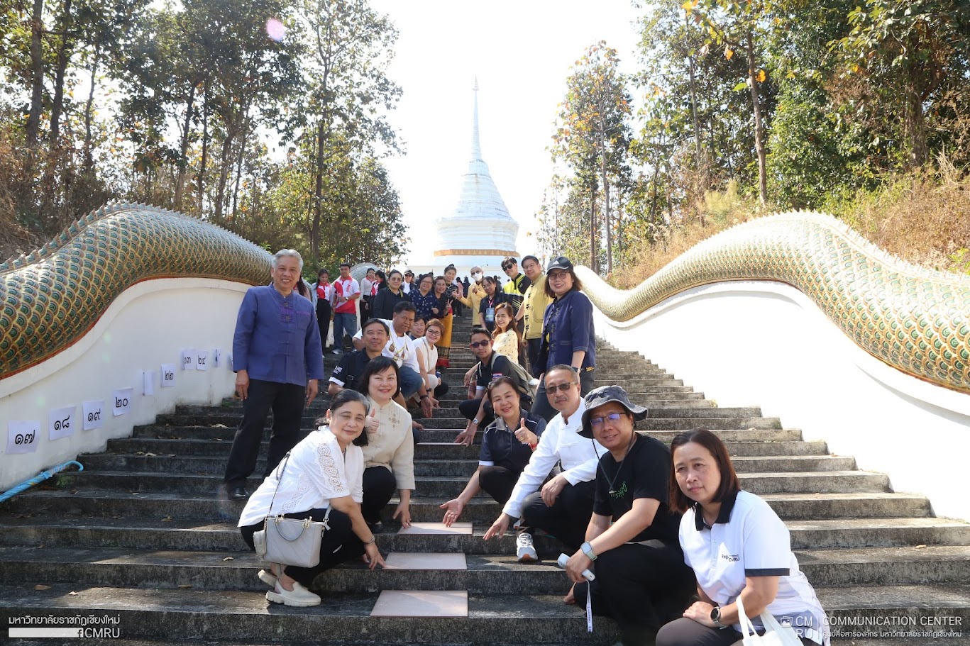On February 14, 2026, Assoc. Prof. Dr. Suthinan Chuenchom, the Dean of the International College, along with staff and students, participated in the “Naga Staircase Tiling” volunteer project to support the restoration of the Great Pagoda and promote local cultural heritage.