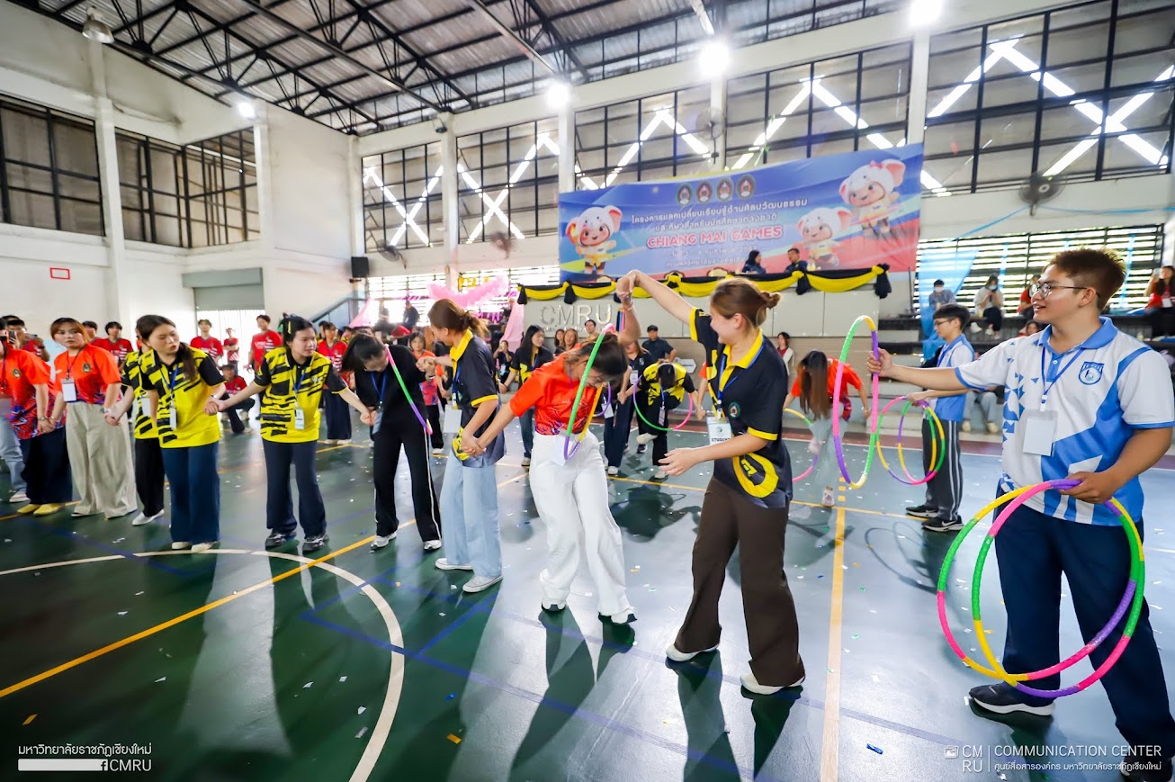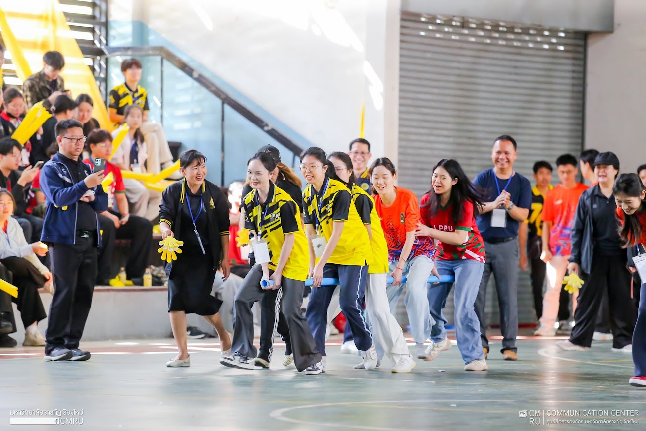 On February 6, 2026, Assoc. Prof. Dr. Chatree Maneekosol, President of Chiang Mai Rajabhat University, officially presided over the opening ceremony of the friendly sports competition at the gymnasium. IC-CMRU students enthusiastically participated in various fun activities designed to promote teamwork and joy, such as ping-pong spoon races, basketball shooting, sack races, tug-of-war, land rowing, and hula-hoop challenges. The atmosphere was filled with laughter and spirit, allowing students to forge new friendships while staying active. This initiative serves as a vital mechanism for developing global social skills among students. The next “Chiang Mai Games” is scheduled to be hosted by Lampang Rajabhat University.